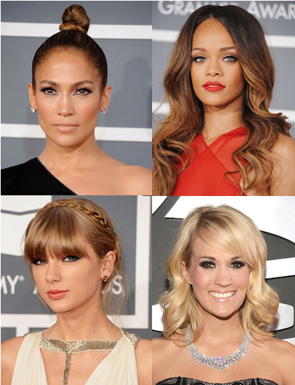 Red lips -- currently dominating the runways at New York Fashion Week -- stole the show, as Rihhana, Beyoncé, and Janelle Monae all sported bright, scarlet pouts. Jennifer Lopez's tight top knot and Taylor Swift's milkmaid braided twist were clearly the best updos of the night, especially in the sea of loose waves almost everyone else opted for. And while Carrie Underwood made headlines for wearing 35 million in diamonds (yeah, you read that right), we think her wow lashes deserve their own award.