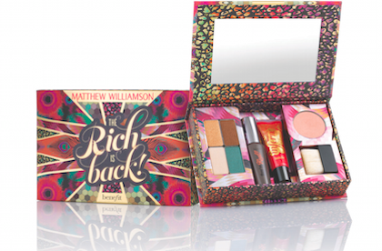 We can't wait for Benefit's Summer 2013 kit -- created in collaboration with London-based designer, Matthew Williamson. The high-octane makeup kit, called "The Rich is Back!", is inspired by the glamorous 1970s and "hedonistic discos." There's an eyeshadow palette with gold, brown and teal tones, a "gimme fever" cheek powder, a mascara, and a lip gloss in "inferno" -- a ruby red color. Williamson is a print-master -- known for his kaleidoscopic colors and bohemian spirit -- so of course the packaging is crazy gorgeous. We know what we'll be wearing for our summertime dance parties!