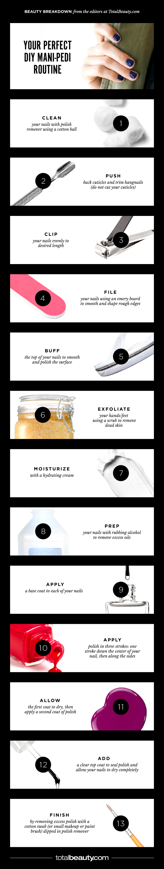So I reached out to the experts Katie Jane Hughes, butter LONDON Global Colour Ambassador, and Gina Edwards, celebrity manicurist for Kiss products, to come up with a comprehensive list of the steps to the perfect at-home manicure or pedicure. From removing your nail polish to finishing with a top coat, this is your ultimate guide to a perfect mani/pedi routine.